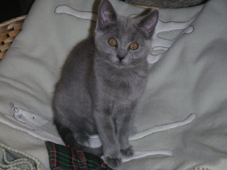 | Zum Seitenanfang Wie die Zeit vergeht - aus Kätzchen werden Katzen. Im Januar 2005 kam neuer Zuwachs zu uns ins Haus. Niobe aus dem Hause Franck, ein Chartreux-Kätzchen mit französischen Eltern, kam im Alter von 14 Wochen zu uns. Es ist uns allerdings schwergefallen, den Namen Niobe zu rufen. So entschieden wir uns, das kleine Kätzchen umzutaufen auf den Namen Nelly. Sicher wird es sie nicht stören und ihr ursprünglicher Name bleibt ja in ihrem Stammbaum erhalten.